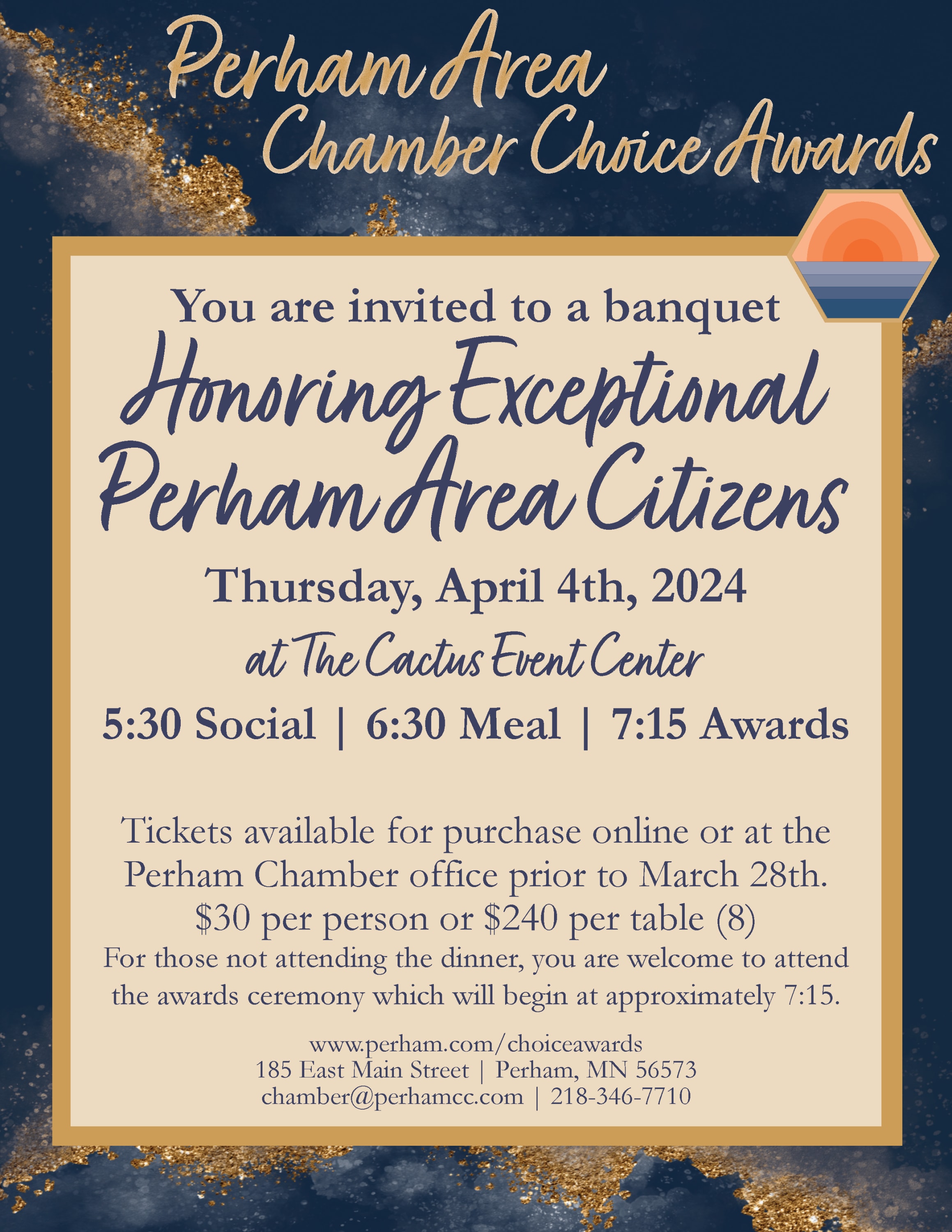 5:30 Social 6:30 Dinner 7:15 Awards