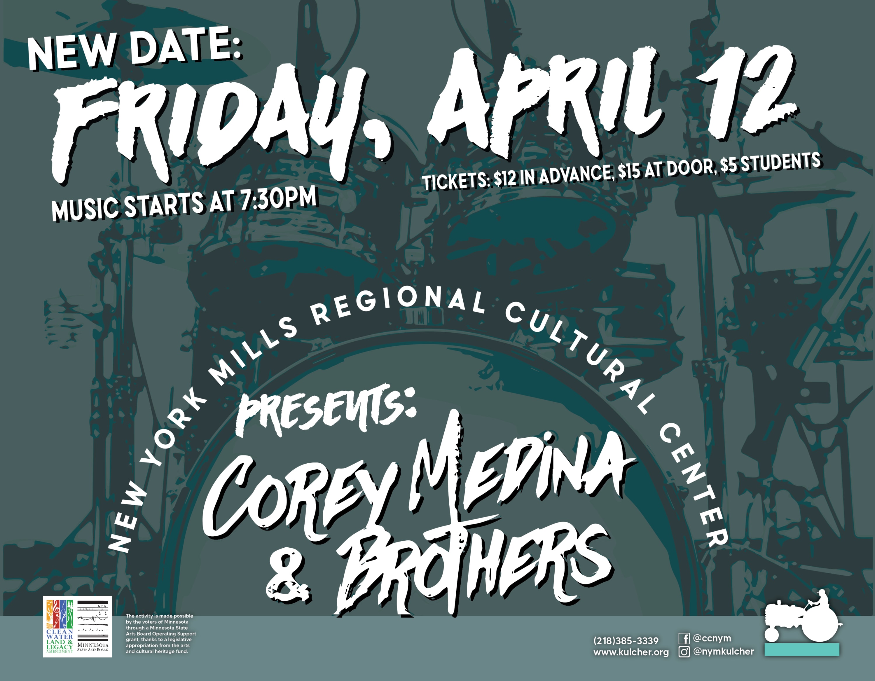 Corey Medina & Brothers LIVE in Concert FRIDAY, APRIL 12, 2024 (rescheduled from March 1). Doors open at 7:00 pm. The concert starts at 7:30. Refreshments available. Corey Medina is a Blues-Rock artist who is Diné from Shiprock, NM, a town in the Navajo Tribal Nation. He moved to Northern Minnesota in 2012 to be closer to his girlfriend, now wife and mother to their two beautiful children. Corey now produces full-time music with his band known as "The Brothers," including Eric Sundeen on drums and Gary Broste on upright bass, all currently residing in Bemidji, MN.