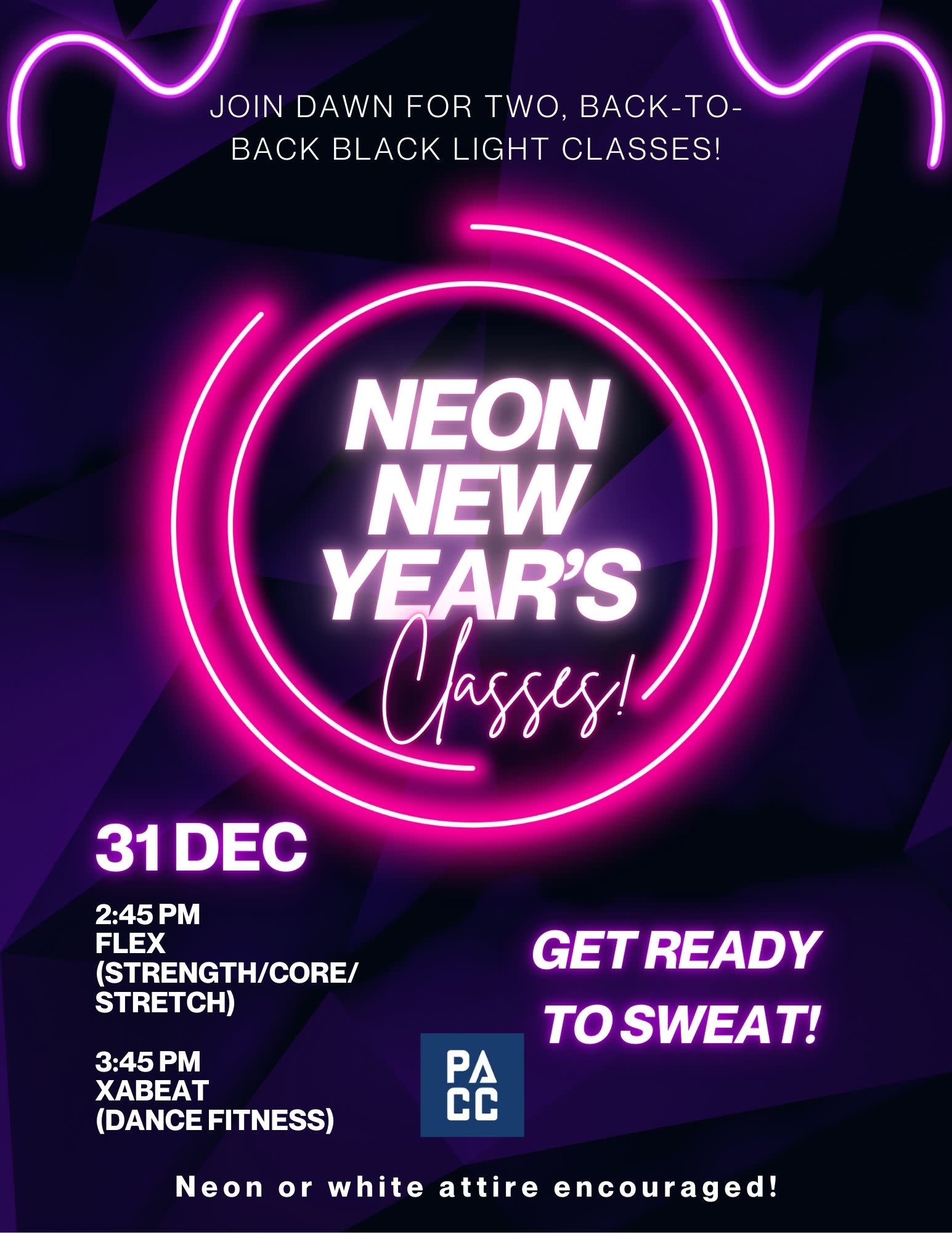 A perfect way to say goodbye to 2025! Let's dance to fun upbeat music and light up the dance floor with our bright neon colors!
